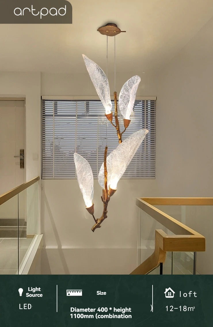 Add a signature centerpiece to your staircase or entryway—this leaf pendant chandelier brings height, warmth, and designer presence in one install.