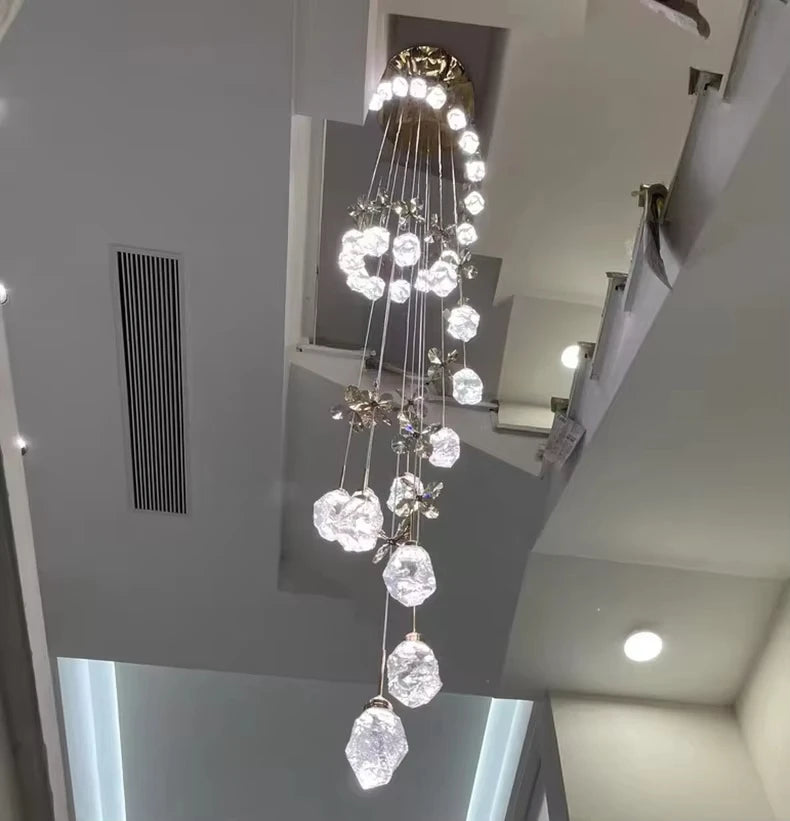 Perfect for villa staircases, double-height foyers, entrance halls, large living rooms, hotel lobbies, and restaurant atriums—anywhere you need a vertical focal point and wide-area illumination.