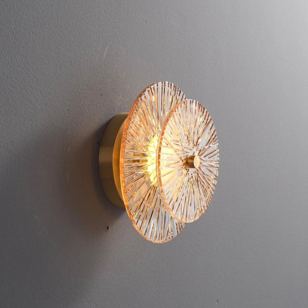This postmodern crystal disc wall lamp is part lighting, part wall composition. The layered disc design creates a sculptural glow that reads like modern art—perfect for living rooms, corridors, and bedroom feature walls. With a copper body and crystal shade elements, it throws a soft up-and-down wash that adds depth without harsh glare. It’s ideal if you’re asking, “what wall light looks like decor in a modern living room?”